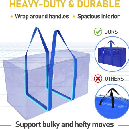 TICONN 6 Pack Extra Large Moving Bags with Zippers & Carrying Handles, Heavy-Duty Storage Tote Moving Boxes for Space Saving