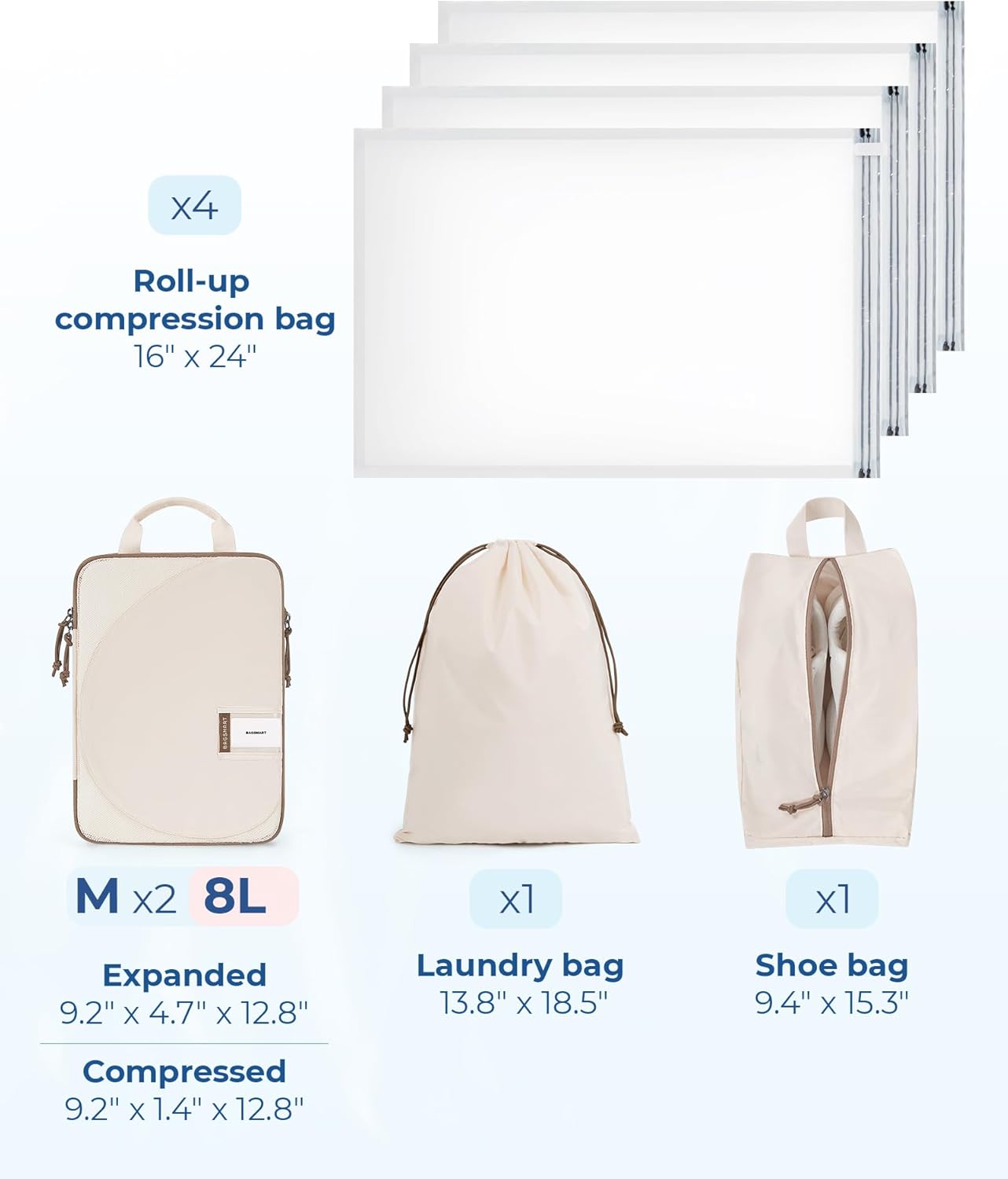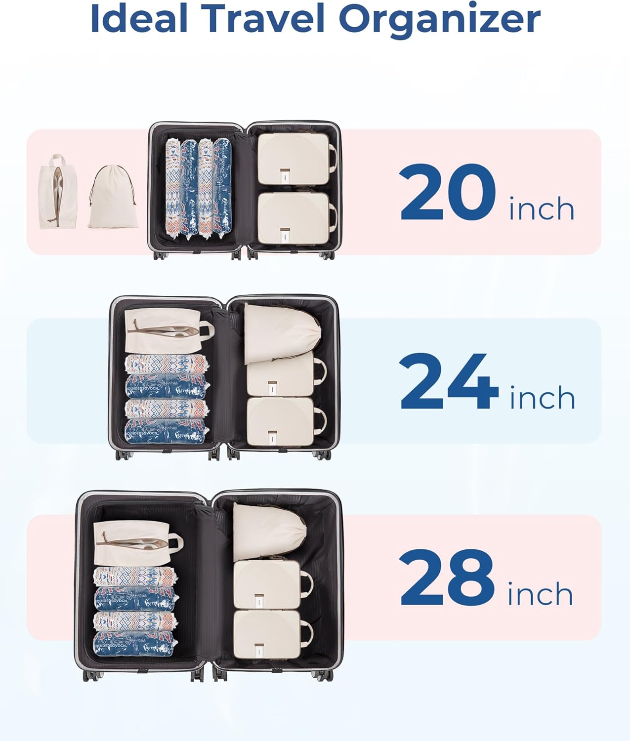 Introducing the ultimate travel organization solution – the 8 Set Suitcase Organizer Bags Set & Vacuum Storage Bags! Say goodbye to messy suitcases and hello to stress-free packing with this complete packing cube set.