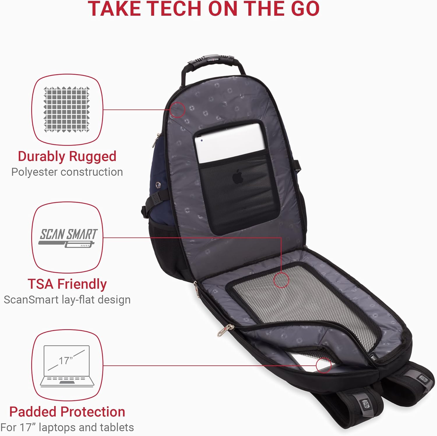 With multiple compartments and pockets, this backpack offers ample storage space for all your essentials, including a dedicated laptop sleeve, a tablet pocket, a water bottle holder, and organizational pockets for your smaller items. Stay organized and on-the-go with the SwissGear 1900 Scansmart TSA Laptop Backpack.